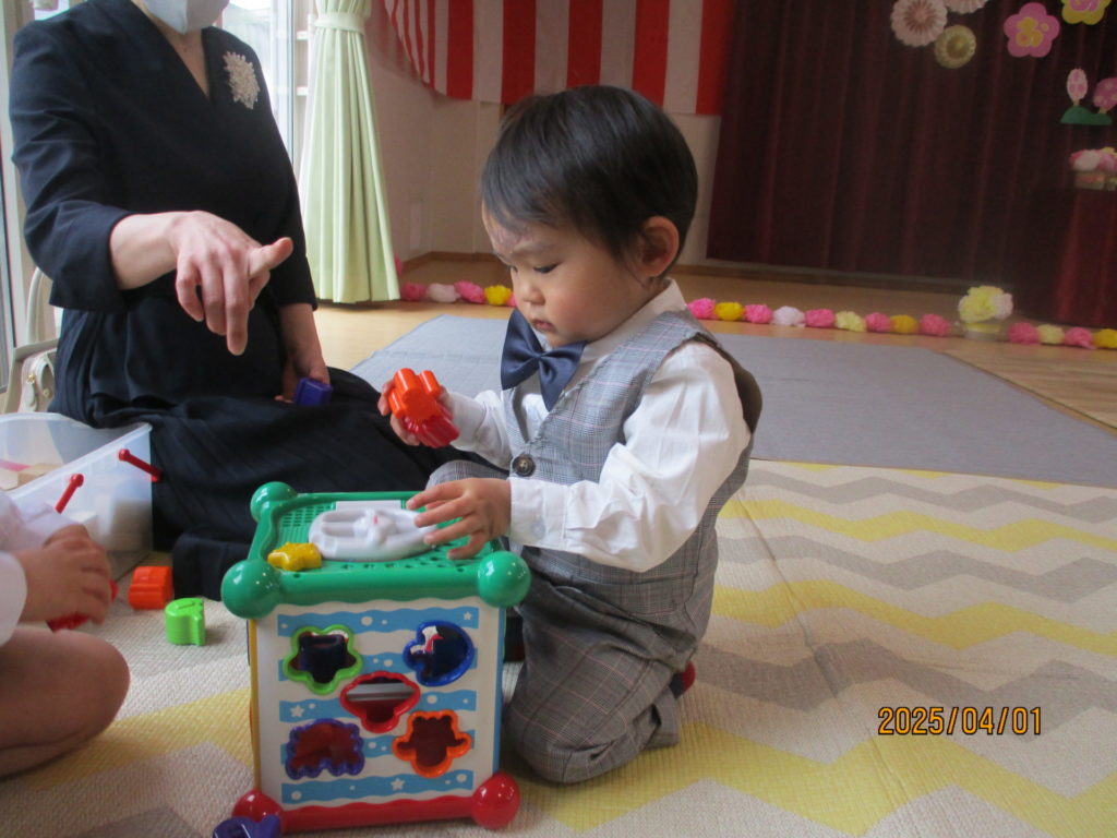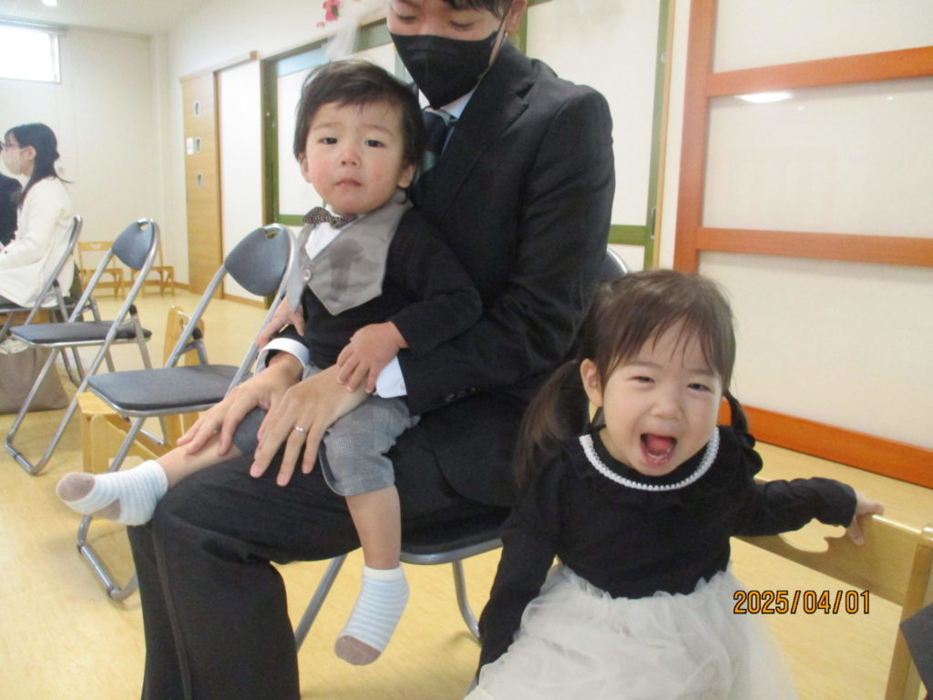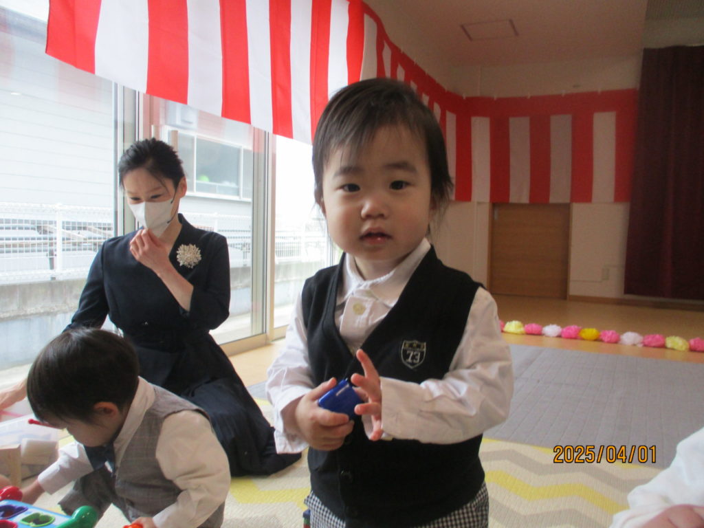 令和7年度 入園式✨By 管理大崎キッズ / 2025年4月28日 今年度は、16名の新しいお友達が、大崎キッズイマジン保育園に仲間入りしました♡♡♡ちょっぴり緊張気味の子どもたち😐🫥😐泣くことなく、みんな最後まで頑張りました💮これから保育園生活楽しもうね~♪